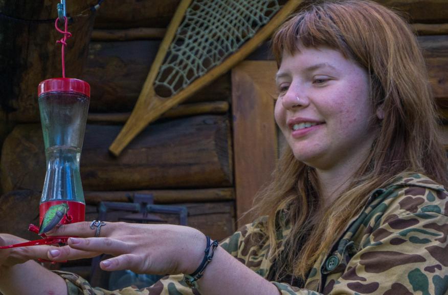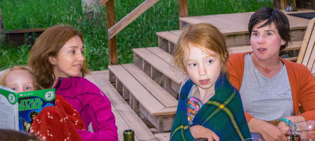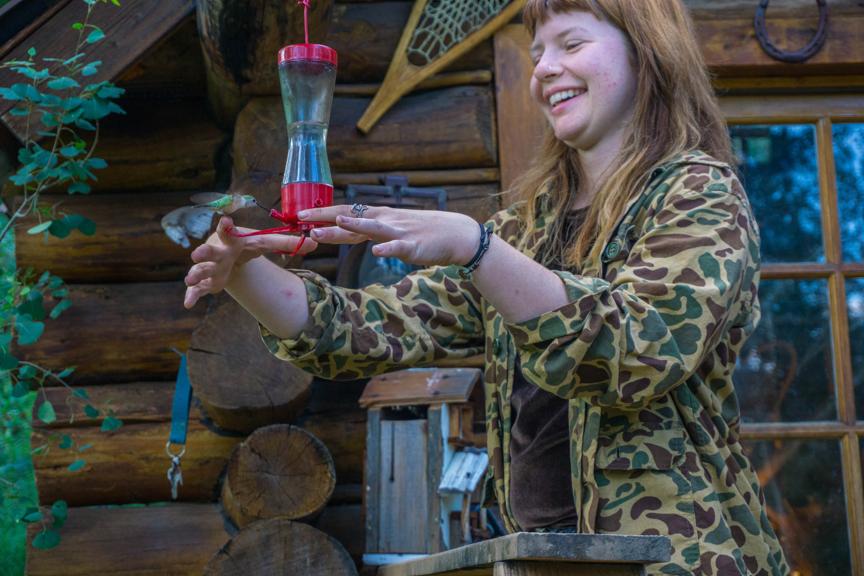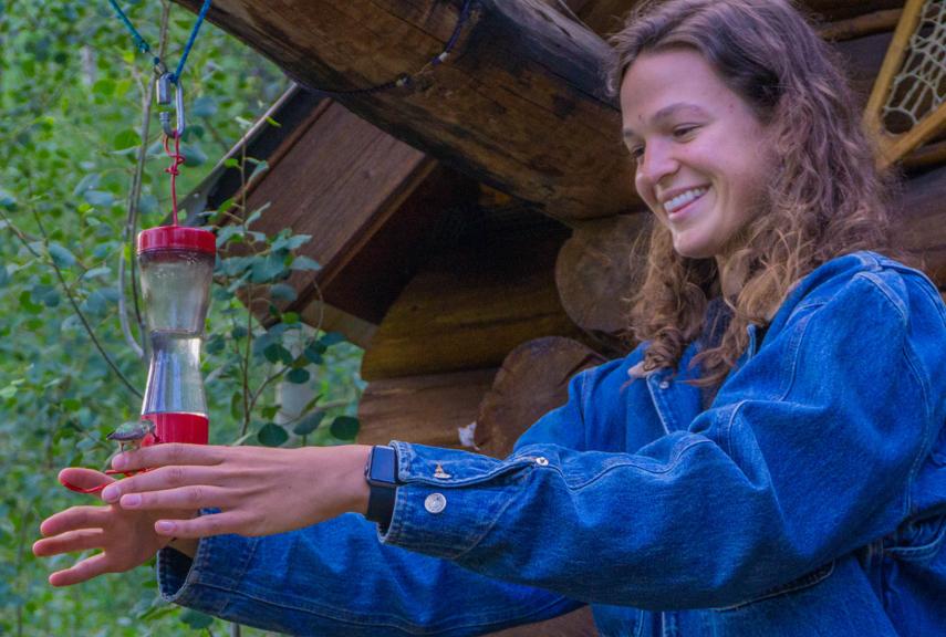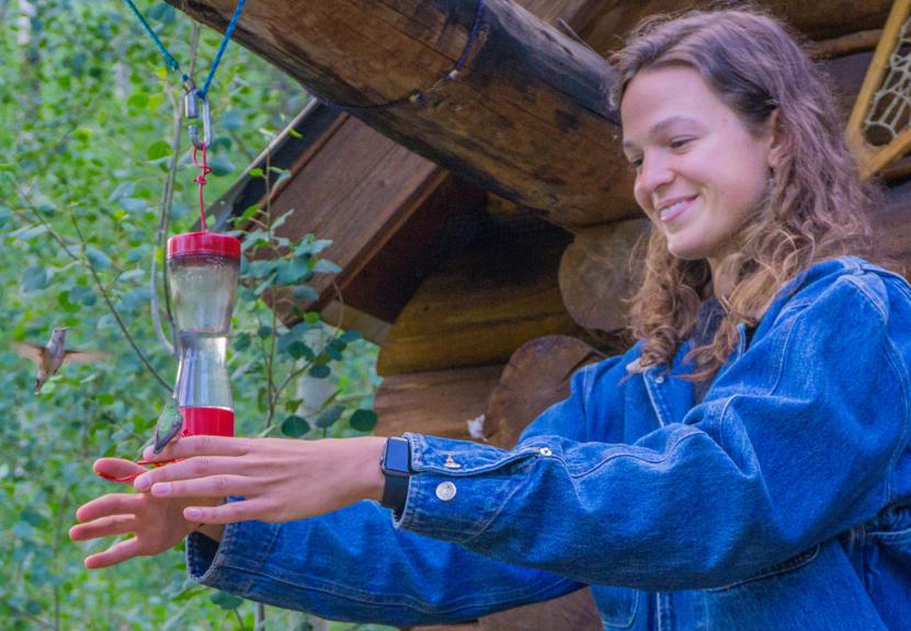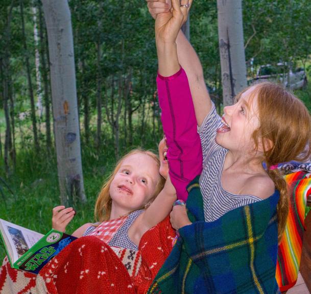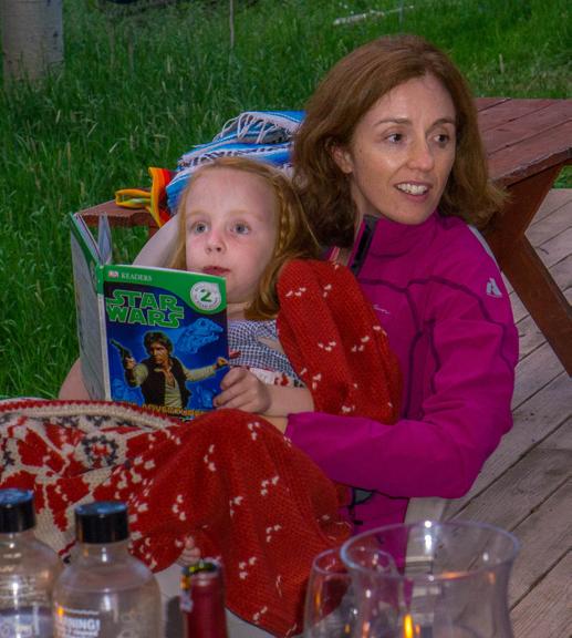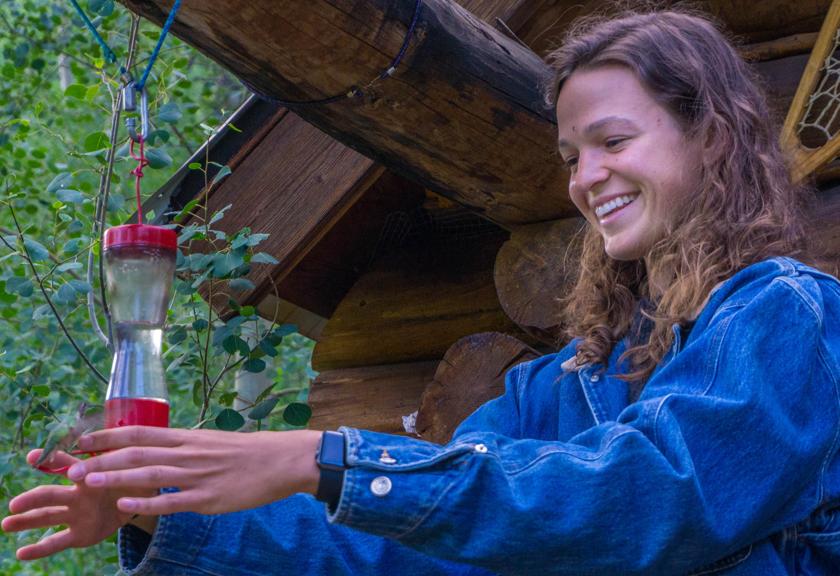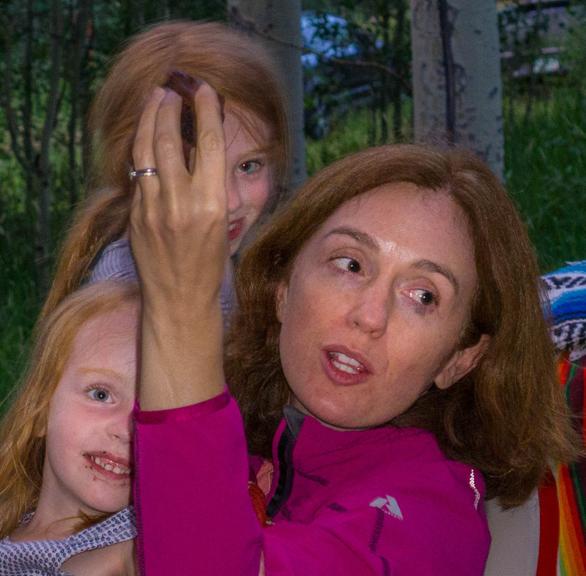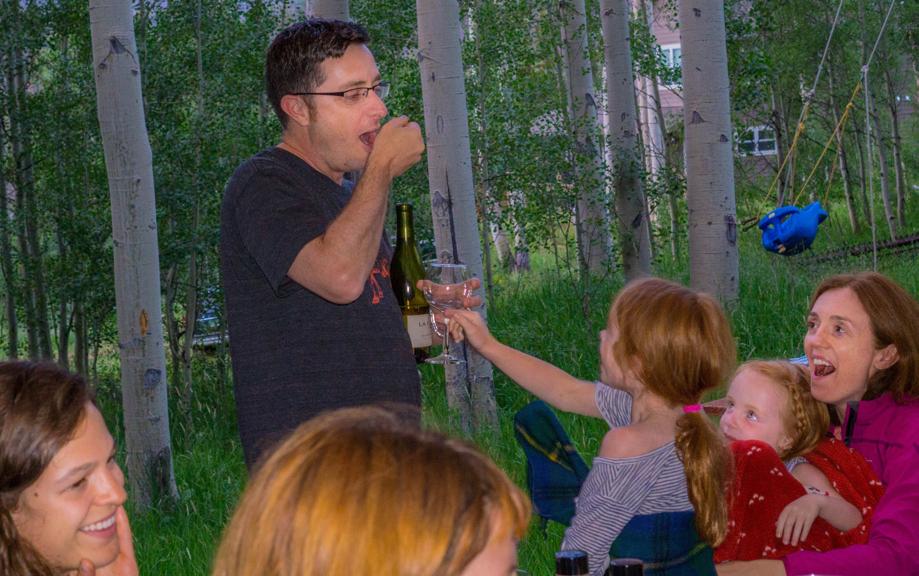 Karrie, Catherine, and Nikki - USFS Rangers - came to dinner, and tamed some broadtailed hummingbirds. Emmy, Michael, Thalia, and Matilda joined us for dessert.