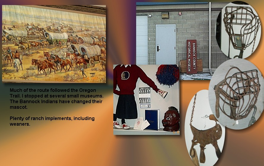 Leaving from the cabin, I followed small roads - over Gore Pass, through Toponas, to Craig, up through southeast Wyoming. I spent the first night in Montpelier, Idaho. The second day took me across Idaho and into Oregon, and up to Pendleton. I stopped often at roadside markers and local museums.