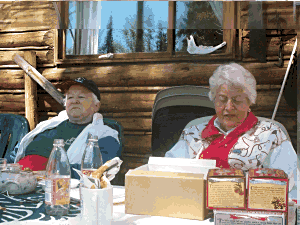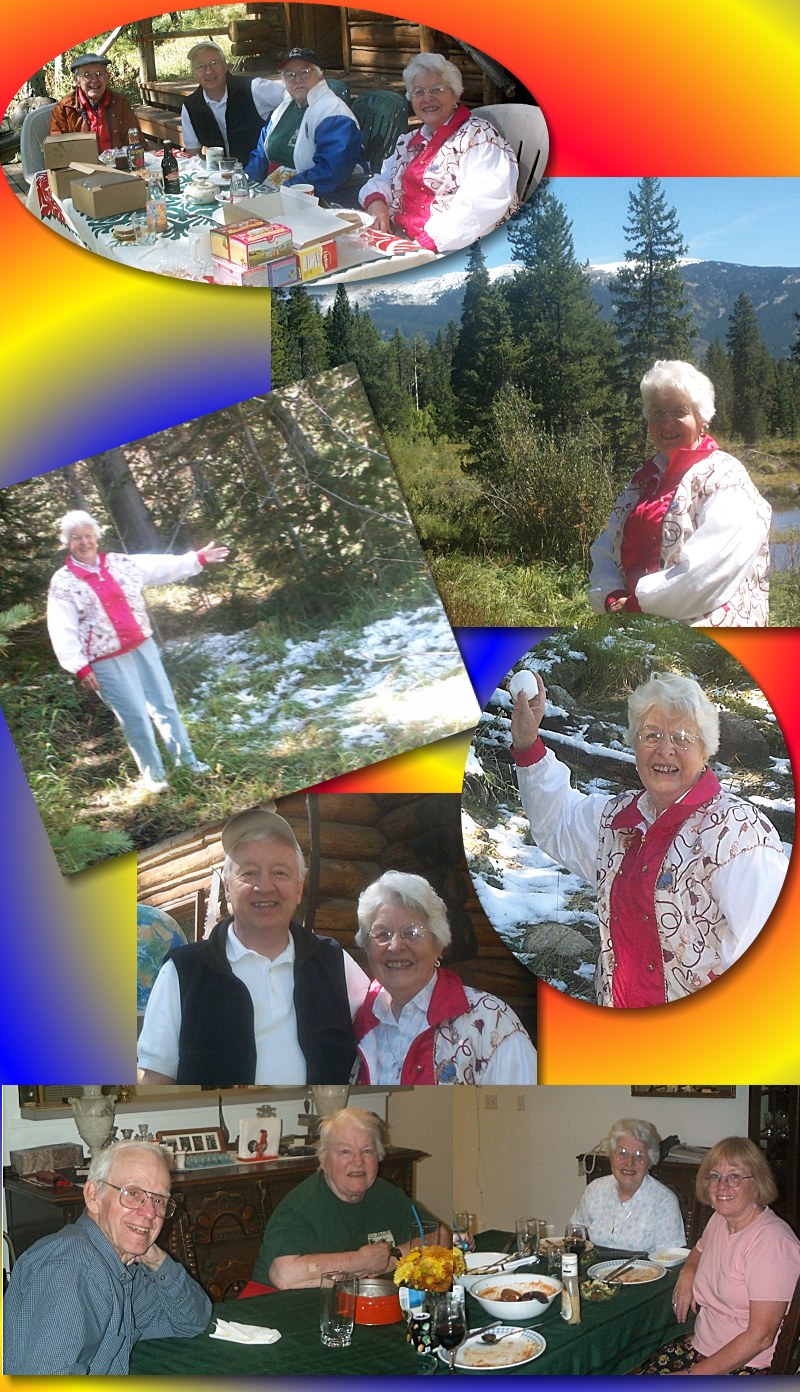 • Jean Nickeson visited Glenn and Marian, and on September 10 Bill accompanied them to the cabin for a day trip. Jean and Bill hiked the loop around the beaver ponds, and discovered an early autumn snowbank. The Swope sisters chatted at lunch on the deck.