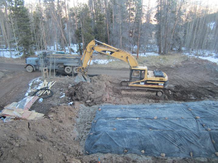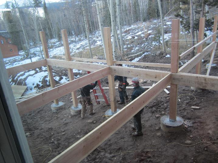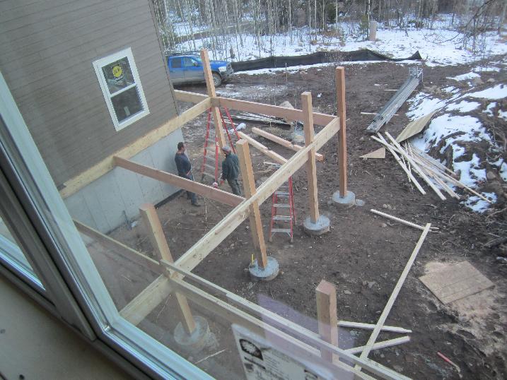 During the past week, basement stairs were constructed in each cabin, plus some framing in Lot 2 basement. The Lot 2 deck was begun, and the Lot 3 leach field was begun.