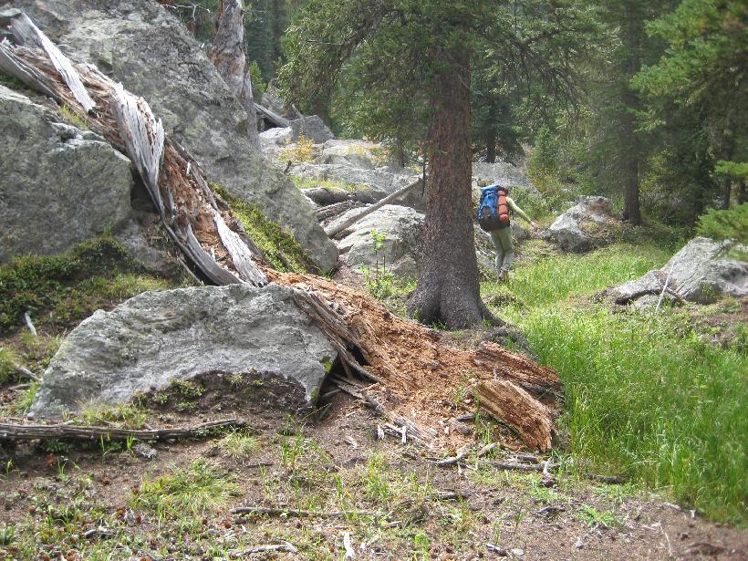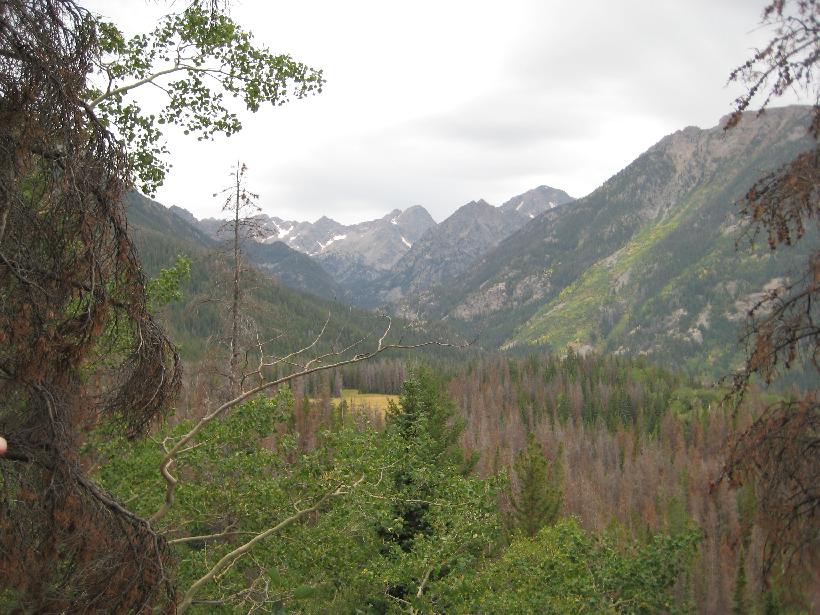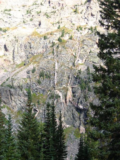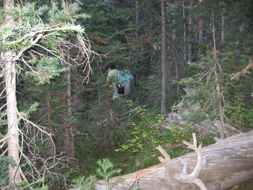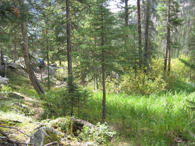 2. 3. South Fork conflence 4. 5. 6. 7. 8. Black bear sow with cub (zoom and shaky hand!) 9. 10. 11. Day 1 campsite - confluence of Middle & North forks 12. 13. 14. 15. 16. 17. Waterfall from Bubble Lake 18. 19. First gully 20. 21. 22. star gentians (note too Dan's tennis shoes) 23. 24. 25. 26. 27. 28. 29. 30. first view of Bubble Lake 31. 32. 33. 34. 35. same goat on summit 36. 37. 38. moonset over Peak C 39. headwall above Bubble Lake 40. 41. 42. view north across 3 ridges 43. return of the goats 44. 45. 46. 47. 48. 50. 51. 53. 54. 55. 56. 57. monkey flower 58. 59. 60. 61. 62. the 'dismal swamp' was pretty dry 63. day 2 - campsite 64. 65. mountain mistletoe 66. spruce cathedral 67. CCC trail work from the 1930's 68. Black Lake 69. view back to the high country |