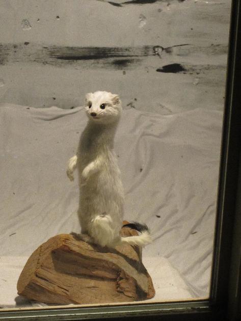 3. GUEST BEDROOM DETAIL of #3: left: sledding down the driveway in winter. right: a short-tailed weasel, in winter called an ermine.